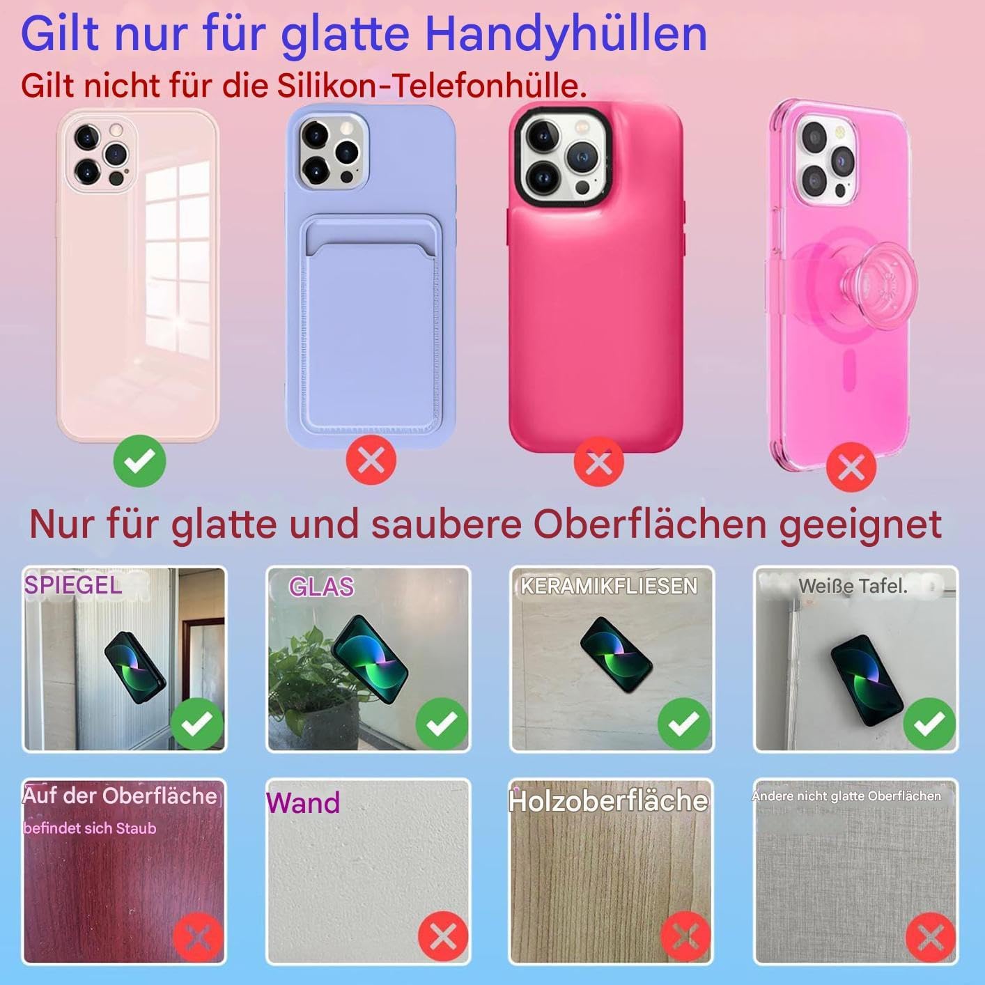 Das vielseitige Design ermöglicht ein einfaches Entfernen und sorgt für dauerhafte Haltbarkeit mit starker Haltekraft. Ein Muss für alle Smartphone-Nutzer.