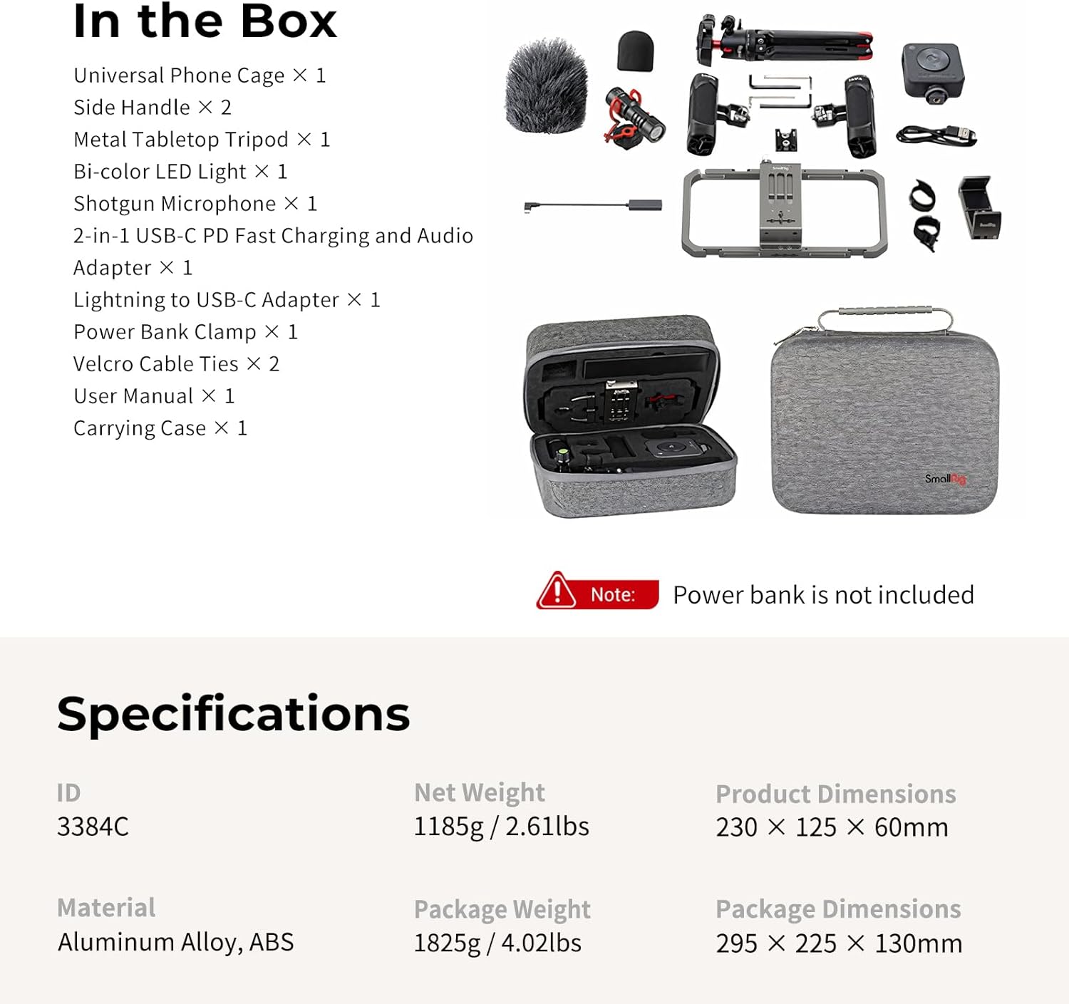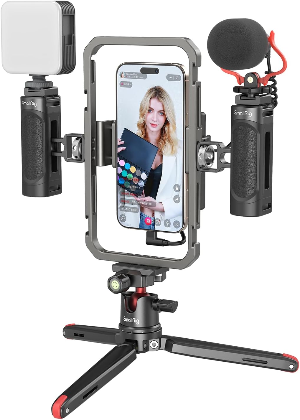 SMALLRIG Universal Phone Video Rig Kit for iPhone, Smartphone and Cameras, Phone Stabilizer Rig with Tripod Microphone, LED Light, Side Grip, Power Bank Mount for Vlogging – 3384C