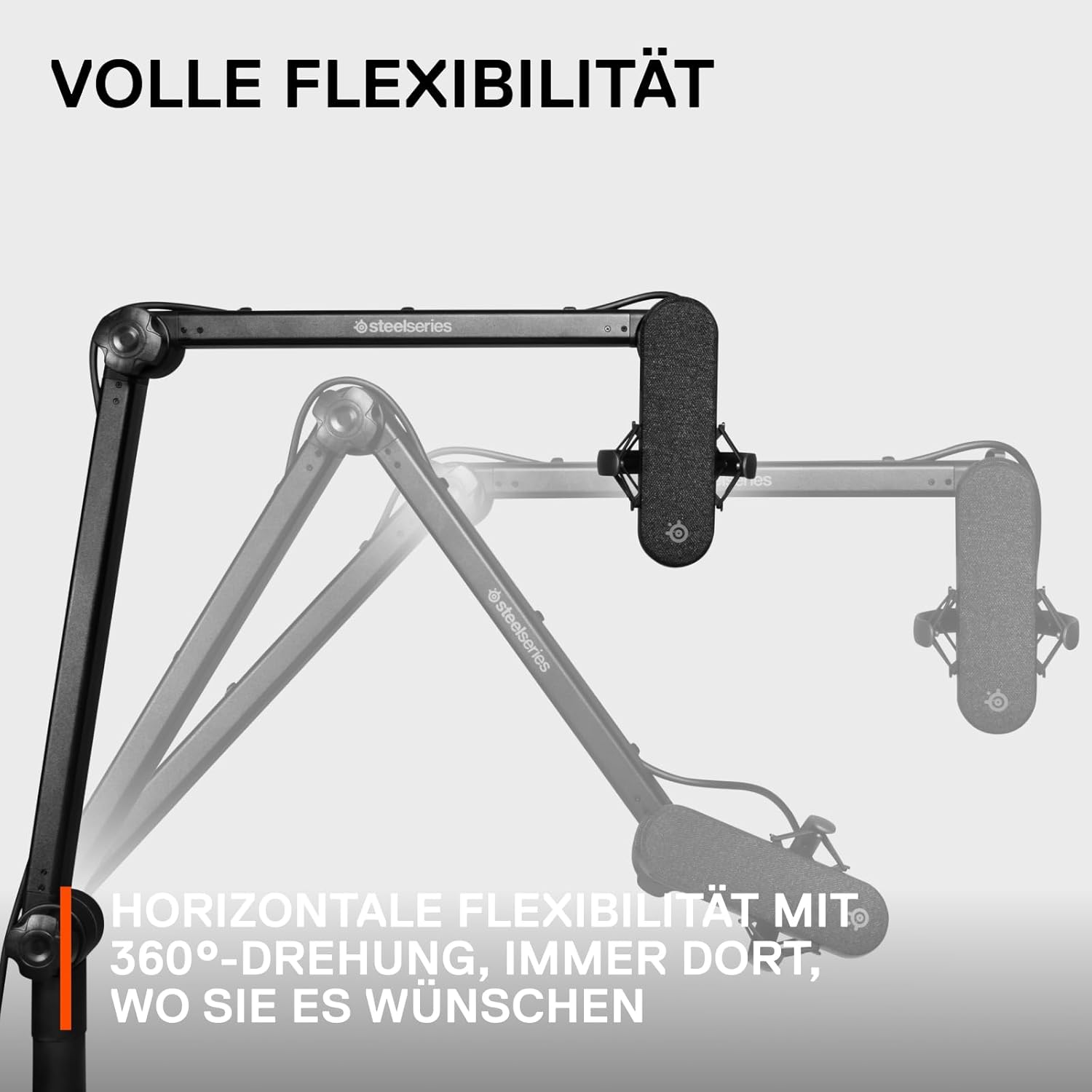 SteelSeries Alias/Alias Pro Microphone Swivel Arm – For Gaming, Streaming and Podcasting – 360 Degree Rotation – Desk Clamp – Foldable Scissor Design – Cable Management – 3/8″ and 5/8″ Adapters