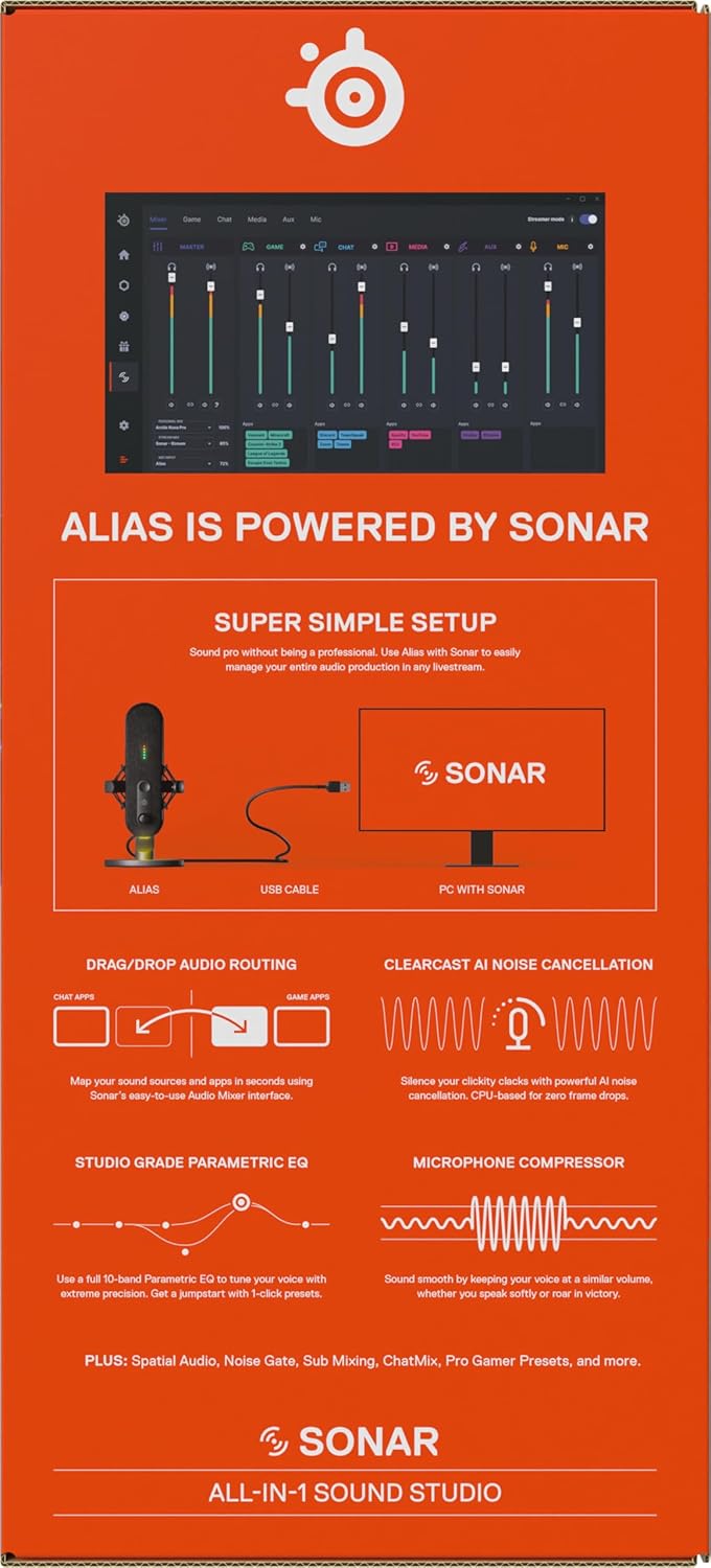 Verschieden Sie sich von Standard-Mikrofonen, die vorgeben, Gaming-Mikrofone zu sein. Wir stellen vor: Alias powered by Sonar.