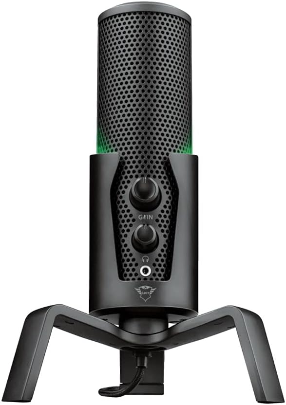 Trust Gaming GXT 258 Fyru Streaming Microphone, 4 Recording Patterns, Gaming Mic with LED Lighting, USB Microphone for Podcast, Vlogging, Music Recording, ASMR, PC, Laptop, PS4, PS5 – Black