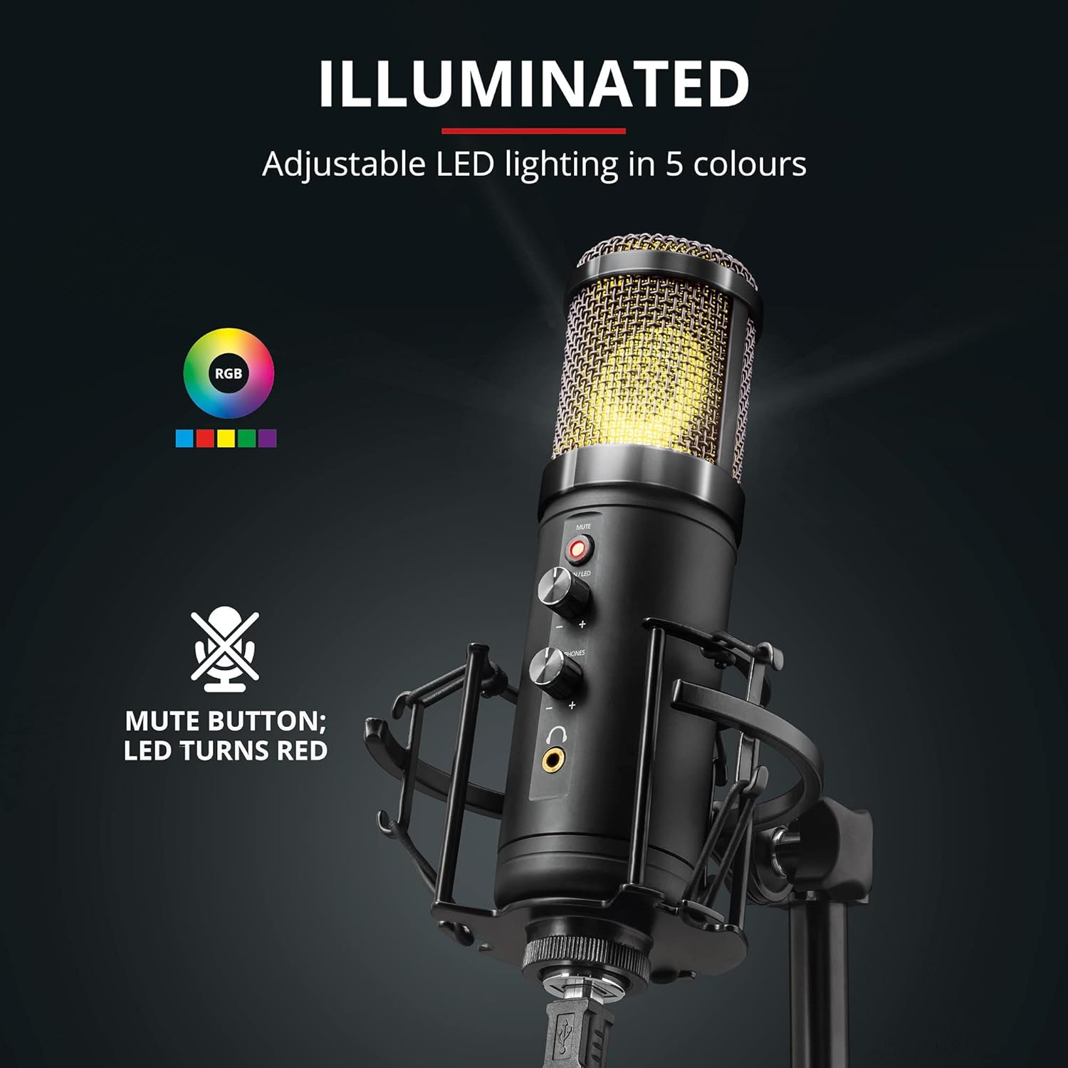 Stoßfestes Design: Das Exxo PC-Gaming-Mikrofon überzeugt durch ein schweres Metalldesign. Seine hochwertige elastische Halterung neutralisiert Oberflächenerschütterungen und verhindert Erschütterungen bei Ihren Aufnahmen, sodass nicht einmal Ihre Tastenanschläge über den Mikrofonständer wandern, und die LEDs sorgen für eine stilvolle Beleuchtung Ihrer Aufnahmen