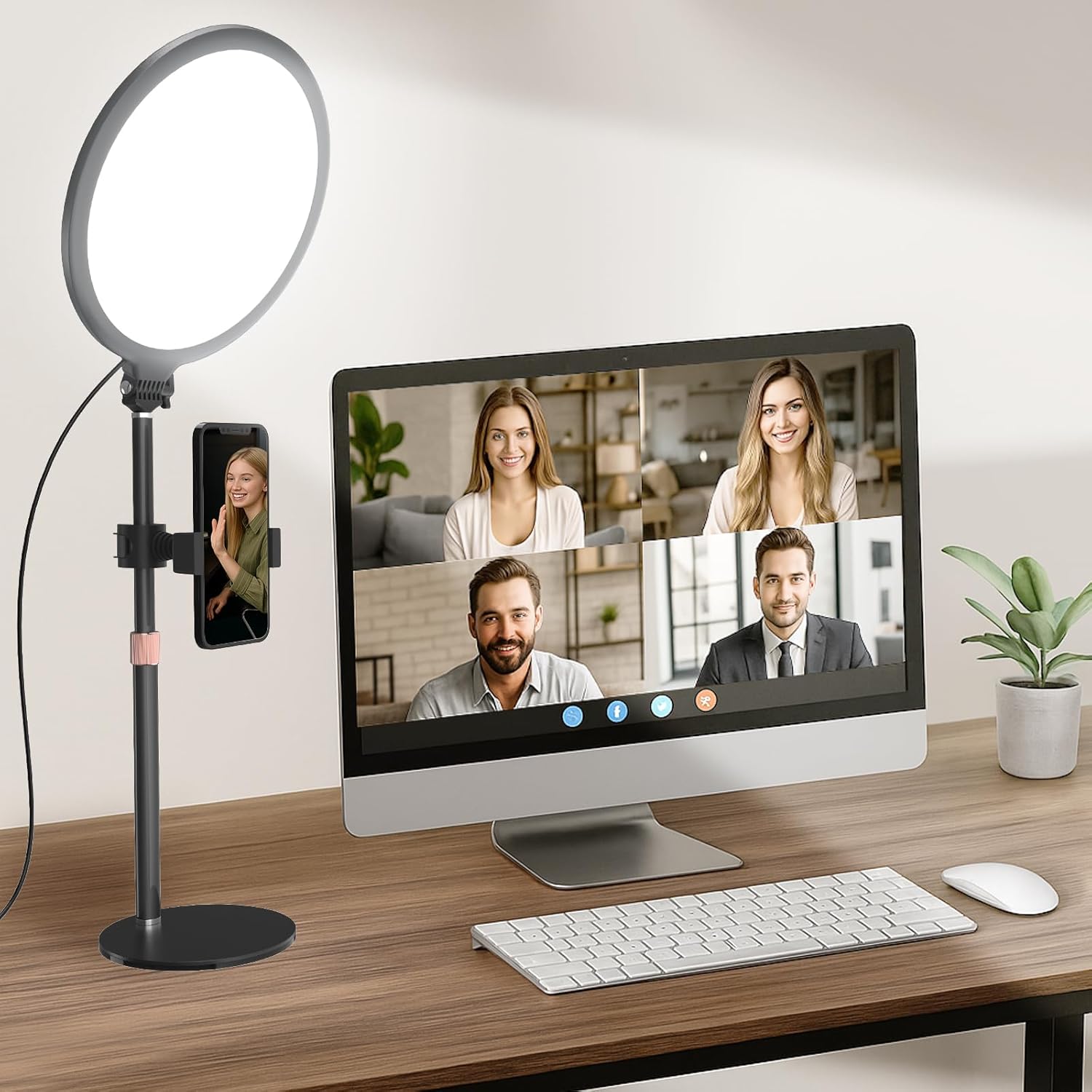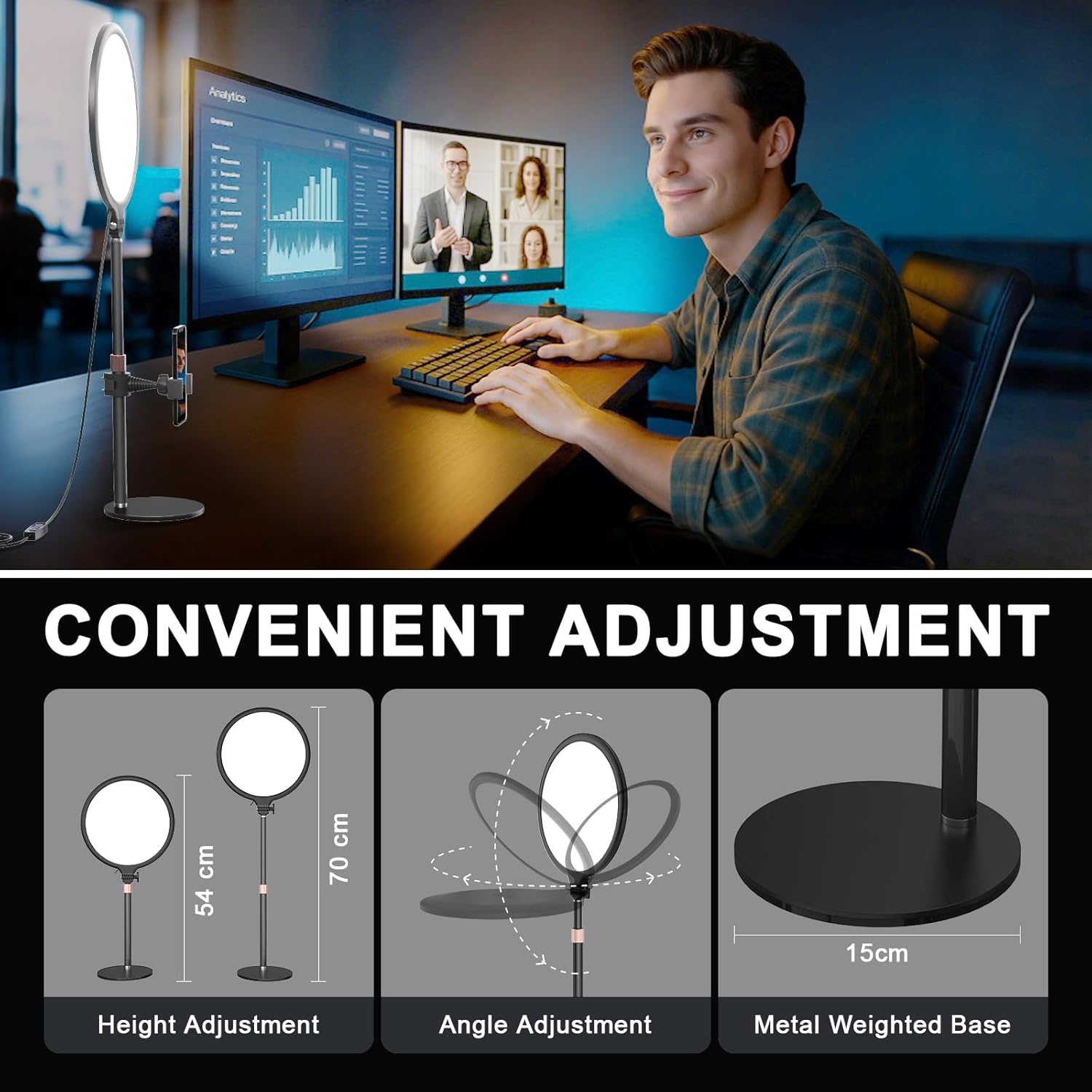 Bester Ringlichttisch für Videokonferenzen: Der Ringlicht-Laptop besteht aus aktualisiertem Metallmaterial, wodurch er langlebiger ist als andere Kunststoffstative. Der beschwerte Metallsockel und die ausziehbare Mittelsäule ermöglichen eine Höhenverstellung und verhindern so ein Umkippen. Das Ringlicht sowie die Telefonhalterung sind um 360° drehbar, ideal für Make-up-Beleuchtung, Selfies, Tiktok/Youtube-Videoaufzeichnung, Live-Streaming, Vlogging, Filmaufzeichnung und vieles mehr.