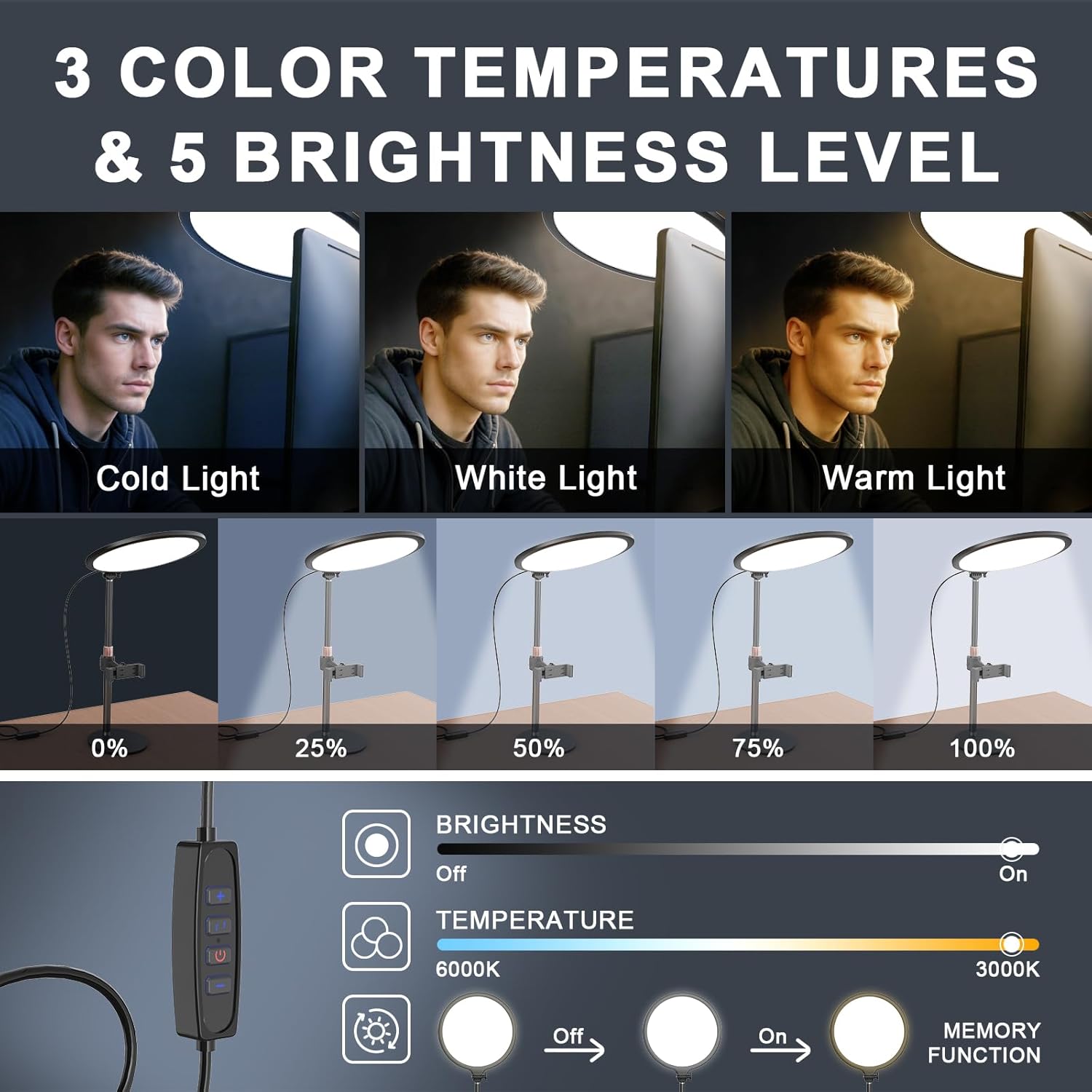 Live-Licht 1 Zoom-Beleuchtung 2 PC Schreibtisch 3 Make-up-Leuchte 4 Arbeitsbeleuchtung 5 Live-Streaming-Licht