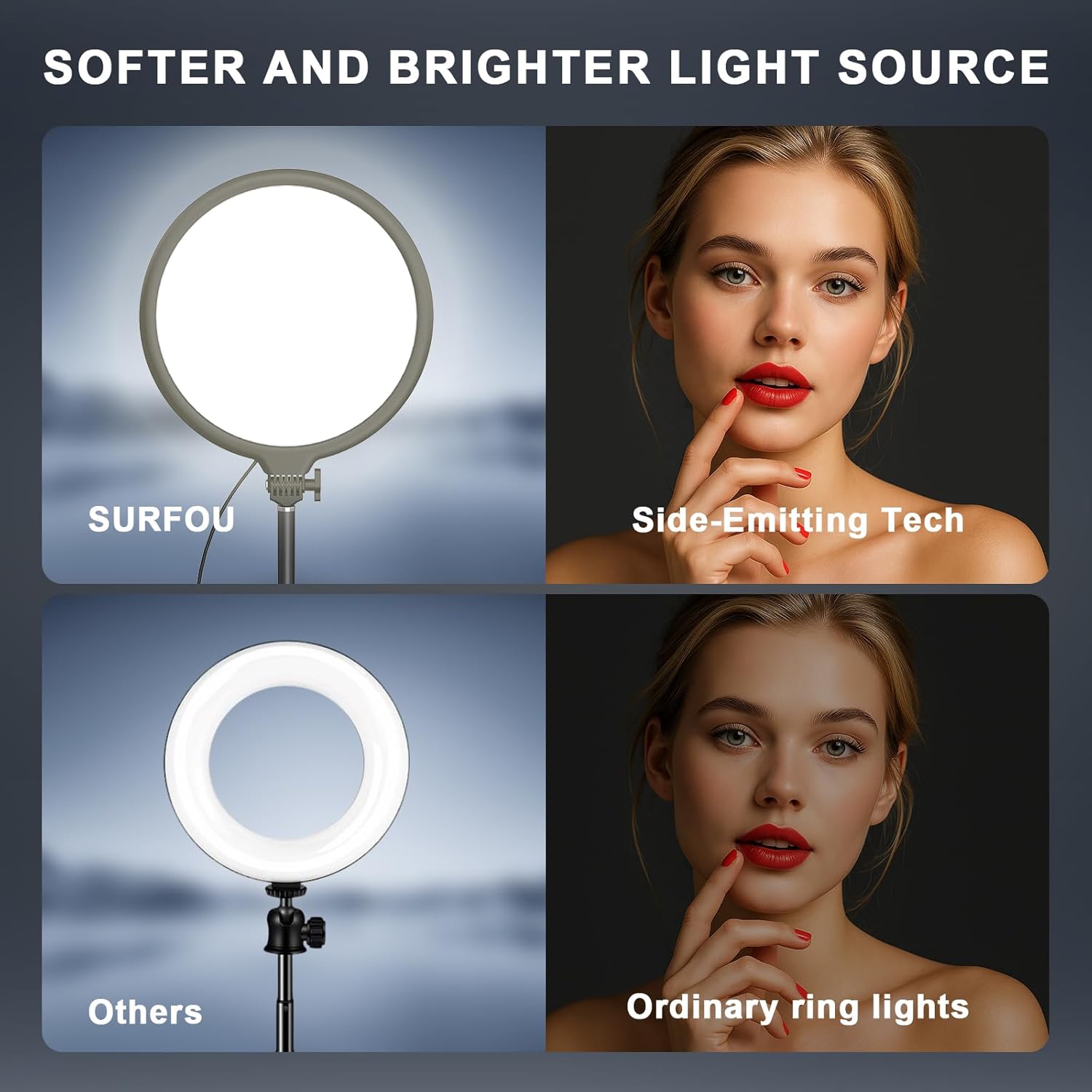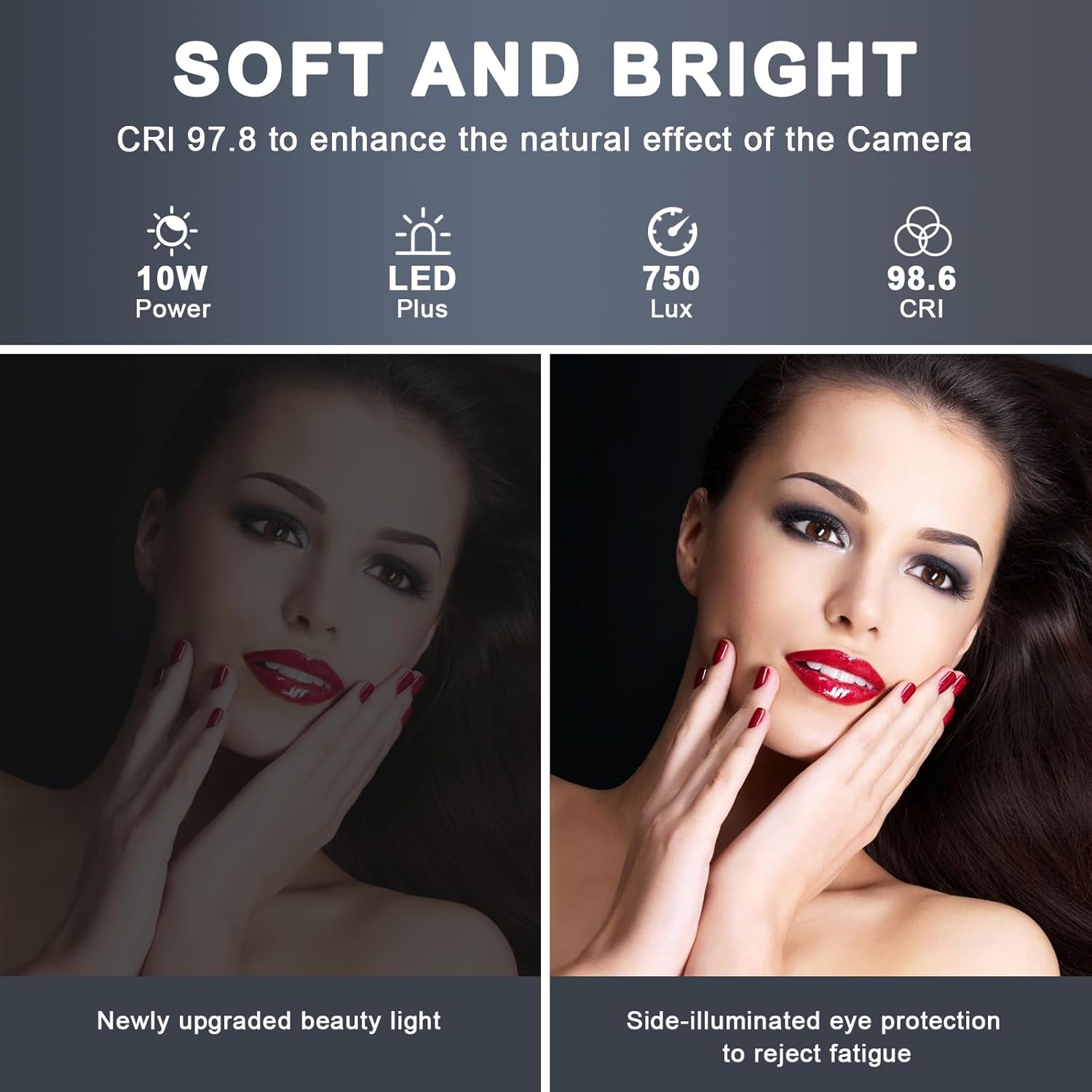 Upgrade der 10,2-Zoll-LED-Panel-Videoleuchte: Mit 84 LEDs bietet die kleine Schreibtisch-Ringleuchte SURFOU R8 eine Beleuchtung von bis zu 680 Lux bei 0,5 m, eine Farbtemperatur von 3000 K bis 6000 K und einen CRI>95, wodurch das Licht natürlicher wirkt.