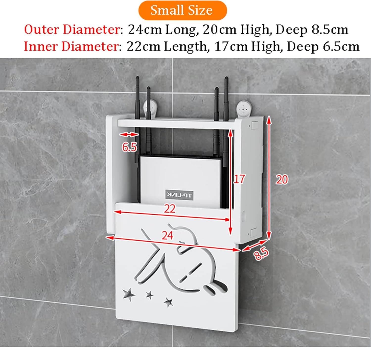 WiFi Router Shelf Storage Box, Wall Mount WiFi Router Stand Set Top Box Streaming Media Equipment Case, Set Top Box Shelf TV Wall Cabinet Living Room, Small
