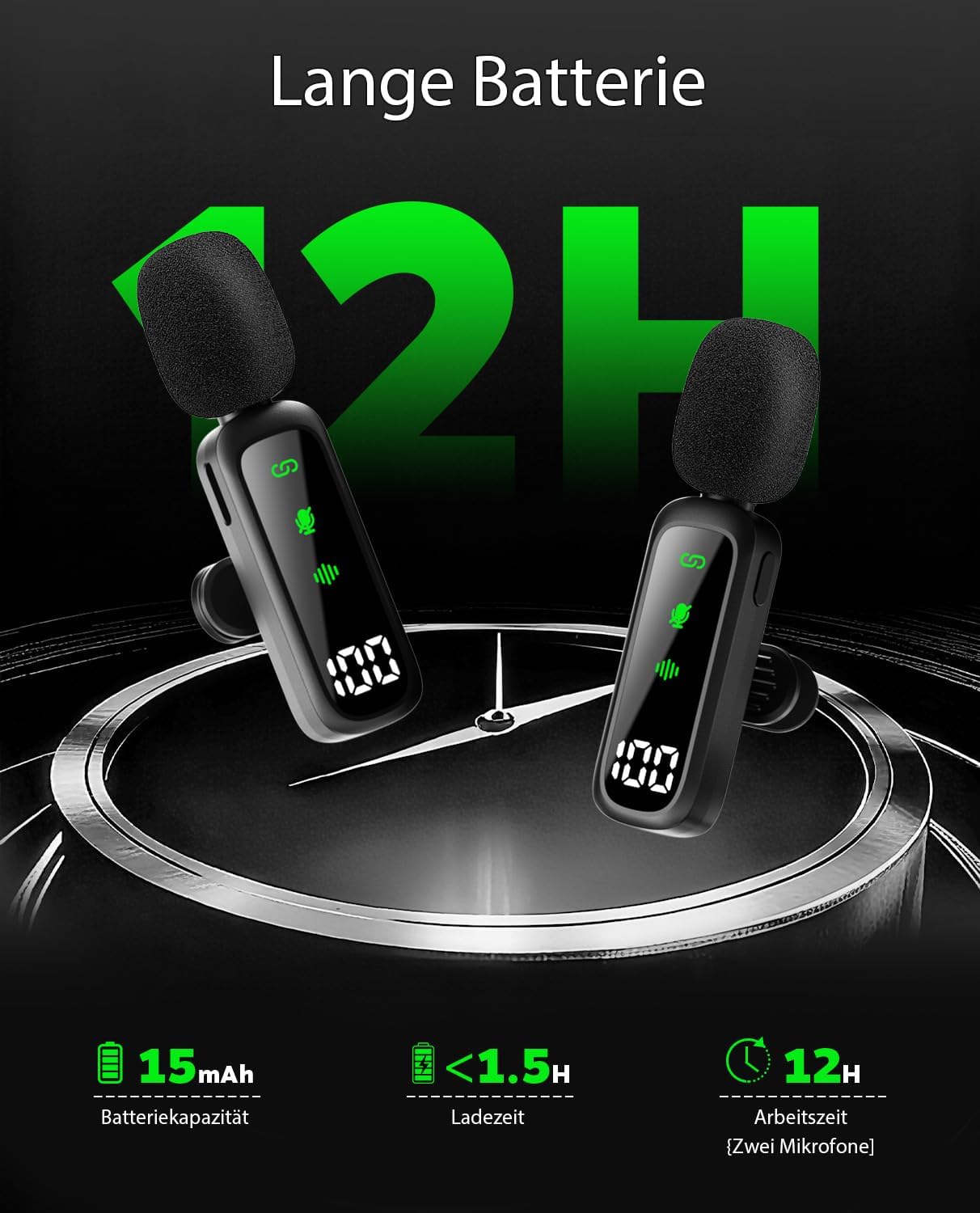 Verbesserte Akkuanzeige: Dieses verbesserte Mikrofon verfügt über eine integrierte Akkuanzeige, die den Ladestatus deutlich anzeigt, sodass Sie immer wissen, wann es Zeit zum Aufladen ist. Ein einzelnes Ansteckmikrofon bietet eine Laufzeit von 6 Stunden, während das Doppelpack insgesamt 12 Stunden bietet. Es ist perfekt für Influencer, Lehrer und Berufstätige, sodass Sie sich bei langen Sitzungen wie Interviews, Online-Unterricht oder Videokonferenzen keine Sorgen um den Akku machen müssen. Das kompakte und leichte Design macht es zur idealen Wahl für iPhone-Nutzer.