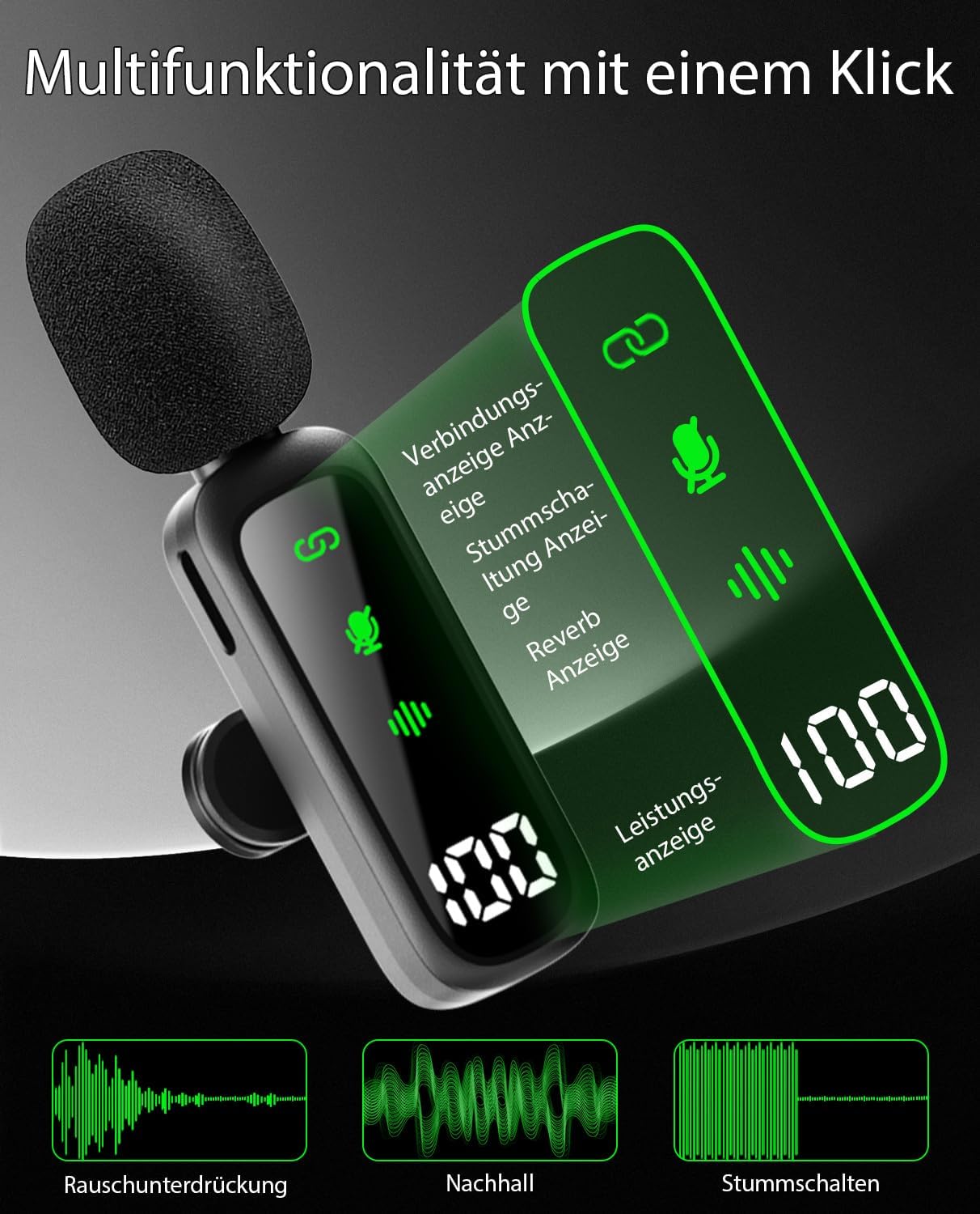 Klang in Studioqualität: Dieses kabellose Lavaliermikrofon liefert kristallklaren Klang und professionelle Klangwiedergabe, garantiert mit satten Bässen und klaren Höhen für Aufnahmen in Studioqualität. Wechseln Sie sofort zwischen Standardmodus, Hall-Modus oder Stummschaltungsmodus für ultimative Kontrolle während des Gebrauchs. Dieses tragbare Ansteckmikrofon ist mit einem spritzwassergeschützten Schaumstoff und einem hochempfindlichen Mikrofon ausgestattet, das Geräusche aus allen Richtungen aufnehmen und Ihnen klare Aufnahmen liefern kann.