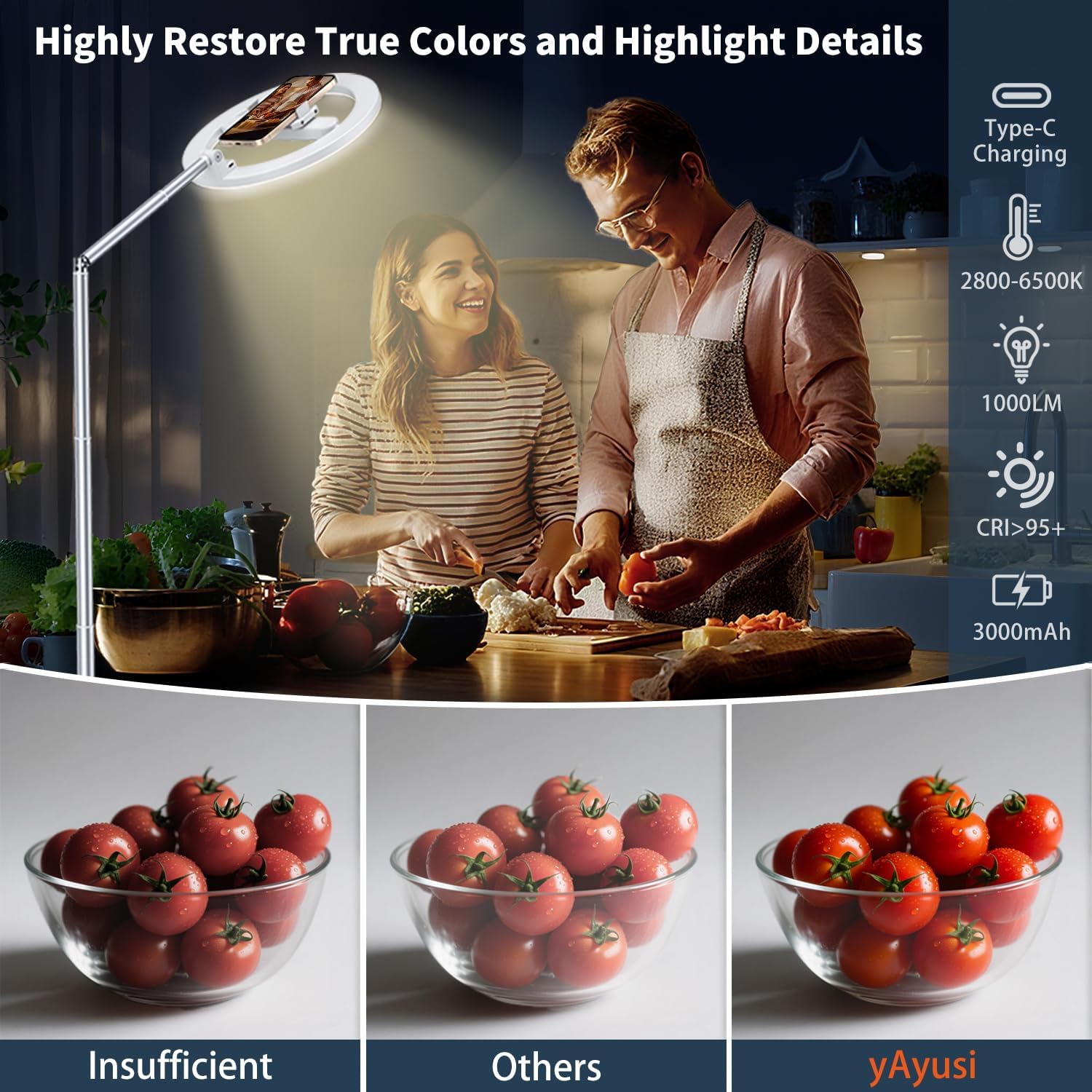 Breite Anwendung: Dieses Handy-Stativ mit Ringlicht zum Scannen von Dokumenten, Videoaufnahmen, Videoanrufen, Live-Streaming, Food-Fotografie, Make-up-Tutorials, YouTube- und TikTok-Aufnahmen. Egal, ob Sie sich in der Küche, im Wohnzimmer, im Schlafzimmer oder im Freien befinden, Sie können in einem begrenzten Arbeitsbereich eine kabellose professionelle Beleuchtung erzielen.