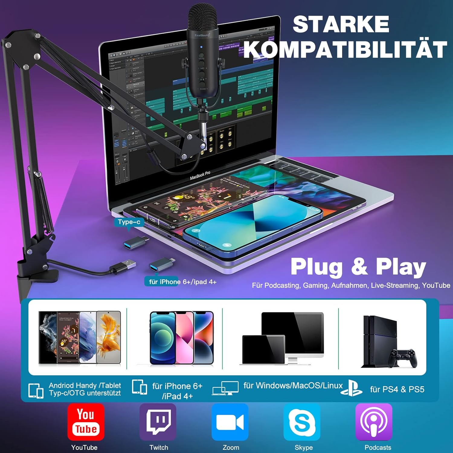 Streaming-Equipment – zealsound USB Gaming Microphone with Arm Noise Reduction, Mute Button & Echo, Studio Microphone Condenser Microphone for Podcast, TikTok Streaming, Youtuber, Zoom, Singing, PC, Mobile Phone, iPhone, Mac & PS5