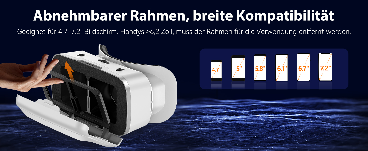 【Universelle Kompatibilität】 Unsrige VR-Brille unterstützt Smartphones mit 4,7-7,2 Zoll Bildschirmen. Sie ist kompatibel mit iPhone 14/13/12/11/Pro/Max/Mini/Xs Max/XR/X/Xs, 8, 8 Plus, 9, 9 Plus, SE, Samsung S23/22/21 Ultra, S22/S21/S20/S10/S10e/S10 Plus/S9/S9 Plus/S8 Plus, Note 20/10 Plus/Note 10/9/8, A20e, A50, Google Pixel, Menschenähnlicher Roboter, usw. C/o Bildschirmen übrig 6,2 Zoll zu tun sein Sie den Ständer explantieren, um ihn zu verwenden