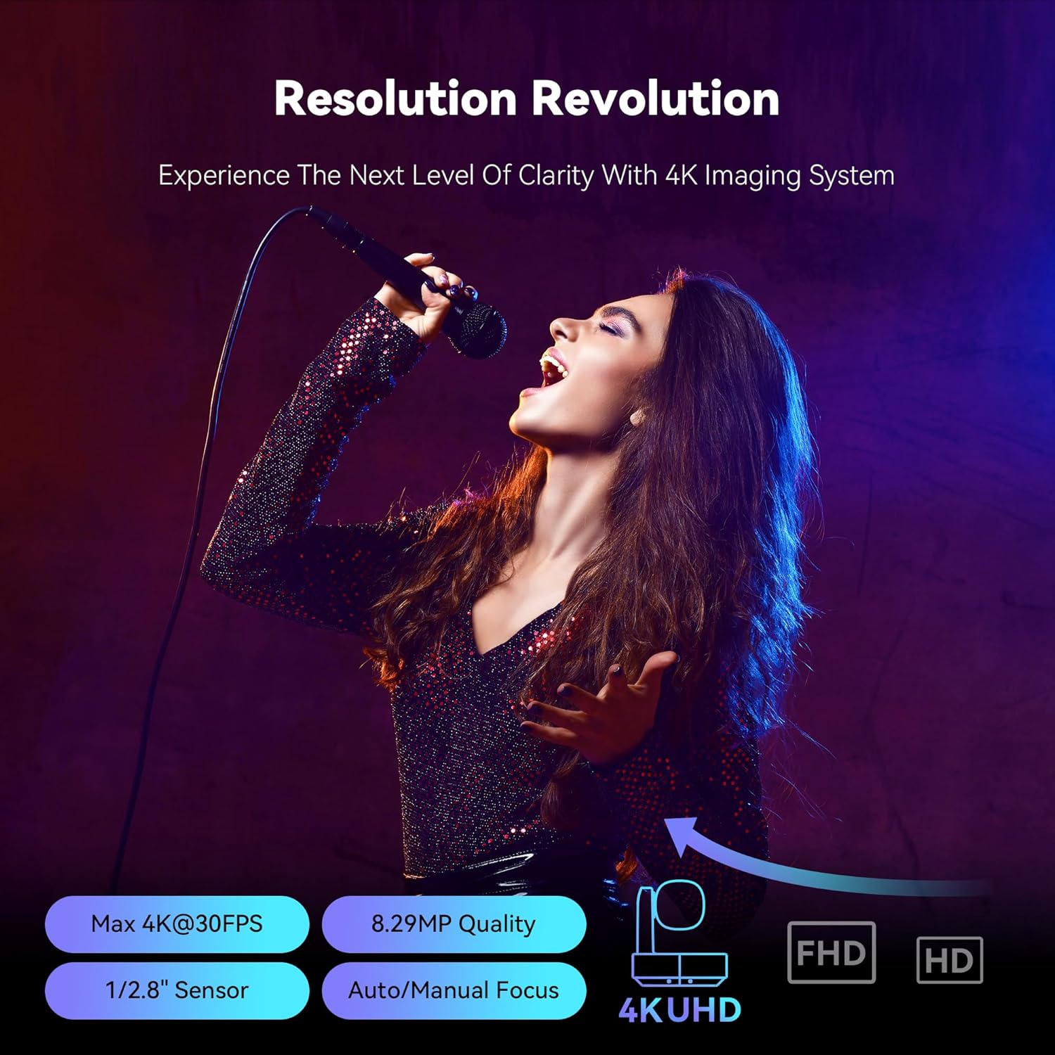 4K Ultra HD & Professionelle Optik Echter 4K-Komplementäre Metalloxid-Halbleiter-Sensor: Gestochen scharfe Bildqualität mit 3840×2160 Pixeln, ideal für jedes Live-Streaming und Detailpräsentationen. 12x Optischer Zoom + Weitwinkelobjektiv: Erfasst jedes Detail ohne Verzerrung – perfekt für jedes große Konferenzräume oder YouTube-Streams.