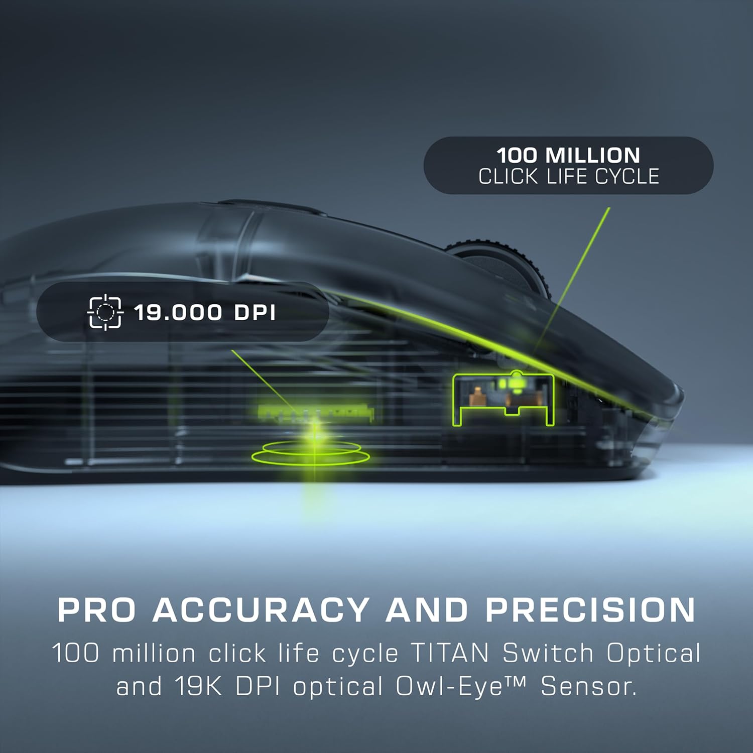 OPTISCHER OWL-EYE-SENSOR – Erlebe dank des optischen Owl-Eye-Sensors mit 19.000 DPI eine flüssige und präzise Diskretisierung.