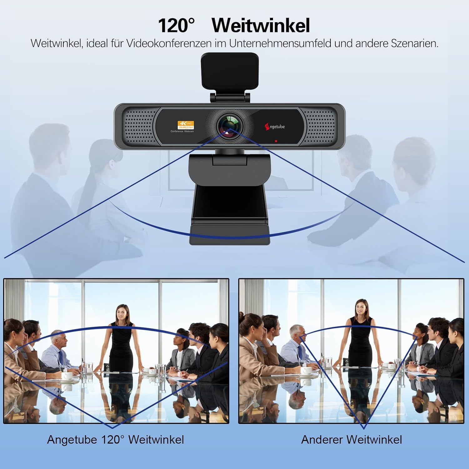 Angetube 914Max 4K Webcam – Streaming Camera for PC with 120° Wide Angle, PDAF Auto Focus, Dual Microphones with Noise Reduction, 1080p@60FPS, Compatible with Laptop, Mac, Teams, Desktop