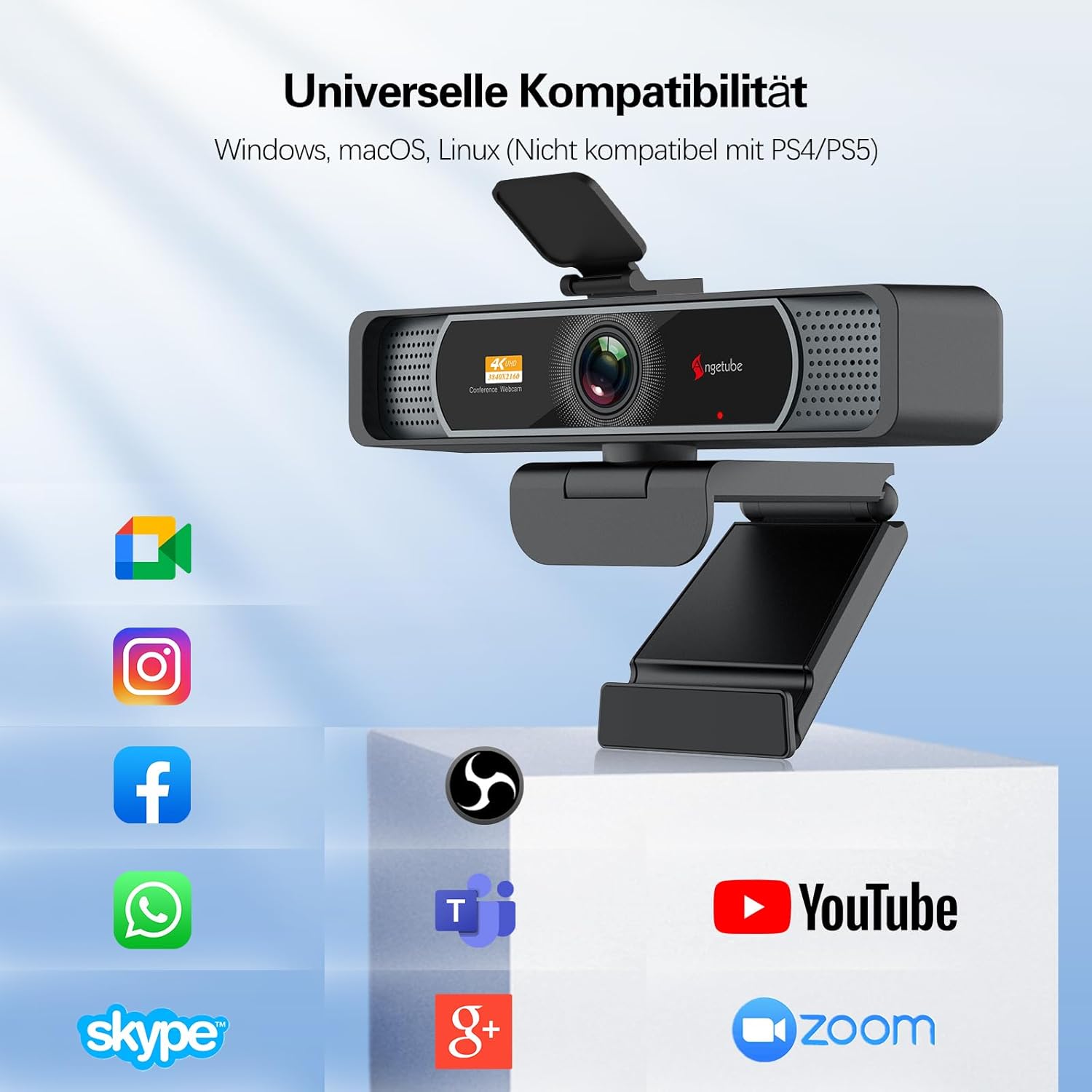 4K-Webcam: Die Angetube 914Max-Webcam bietet eine maximale Auflösung von 3840 x 2160 und zeigt scharfe und klare Bilder in 4K @ 30fps oder 1080P @ 60fps. Es eignet sich für verschiedene Situationen wie professionelle Konferenzen, Videoanrufe, Live-Streaming, Online-Unterricht, Aufzeichnungen und Spiele.