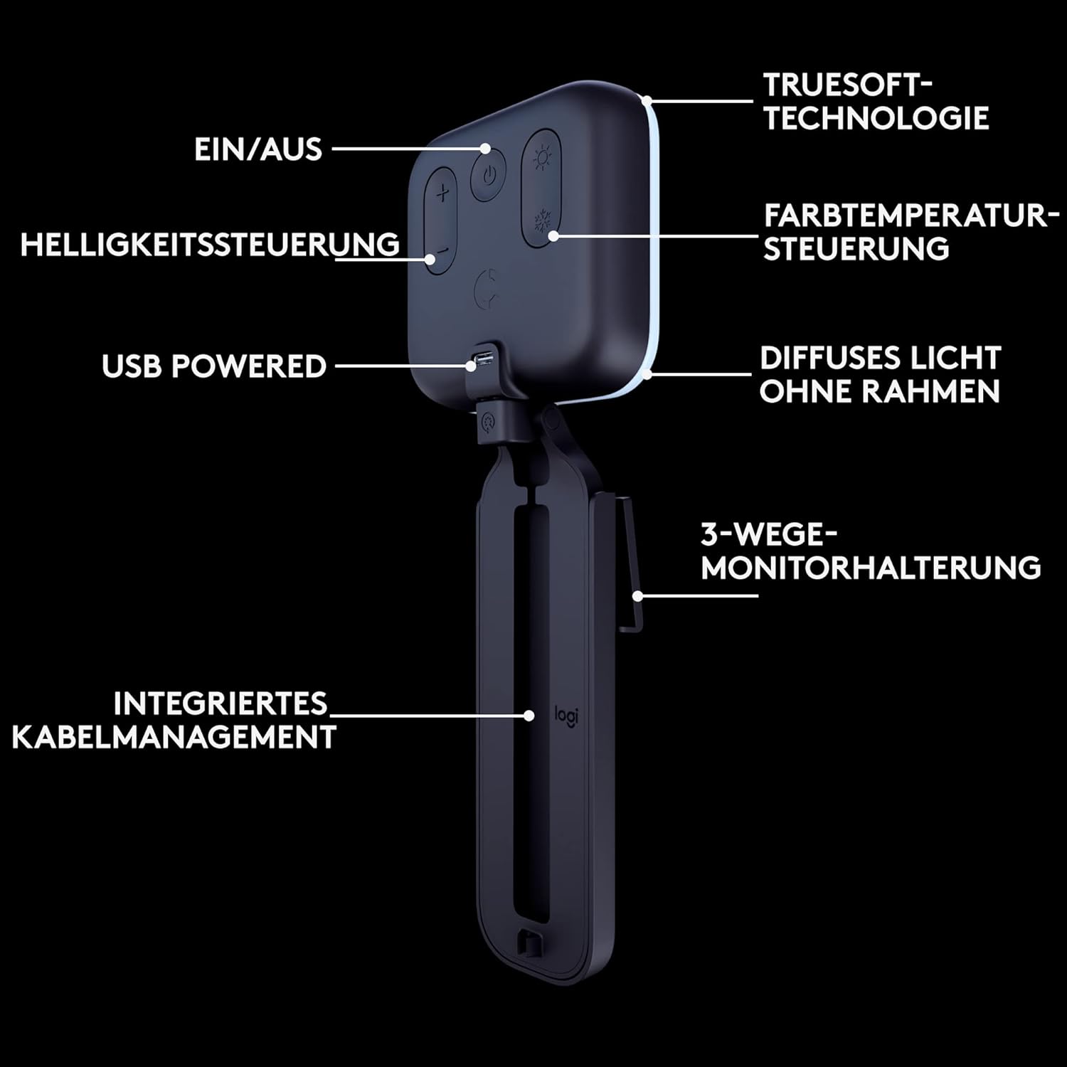 NATÜRLICHE HAUTTÖNE, HELLES ERSCHEINUNGSBILD Die Logitech TrueSoft-Technologie sorgt für ausgewogenes LED-Licht mit filmischer Farbgenauigkeit und Beleuchtung für Videokonferenzen und Zoom-Meetings