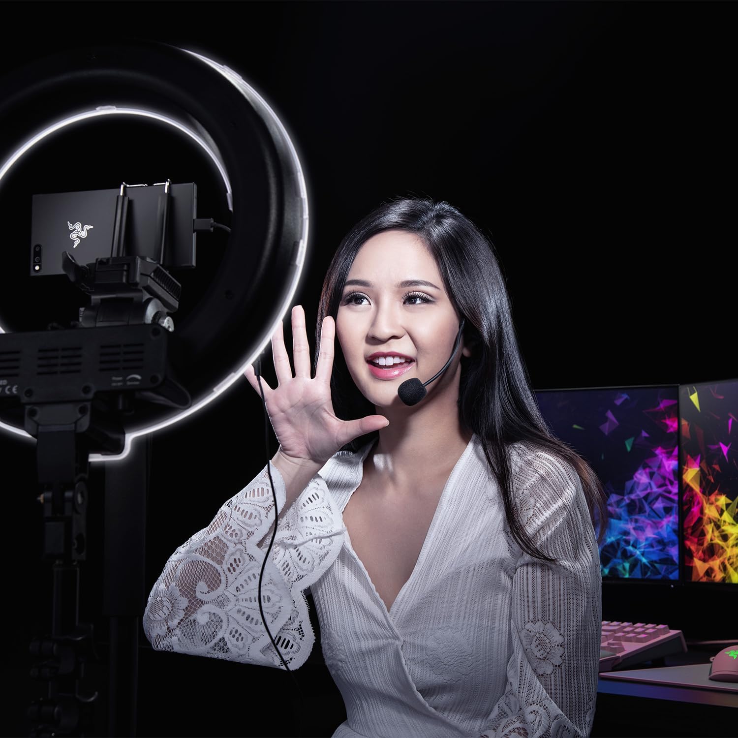 Ringlicht mit stufenweiser Helligkeitsregelung: Kein umständliches Einrichten mehrerer Lichter mehr, um das Motiv für die Kamera richtig auszuleuchten. Der Razer Kiyo taucht den Streamer in ein gleichmäßiges, schmeichelndes Licht und macht Schluss mit harten Schatten.