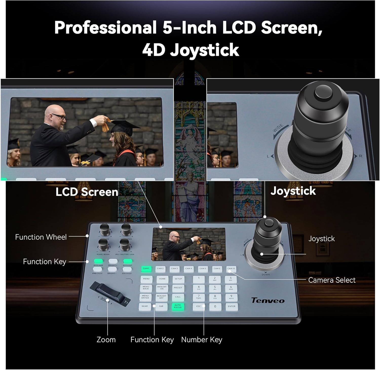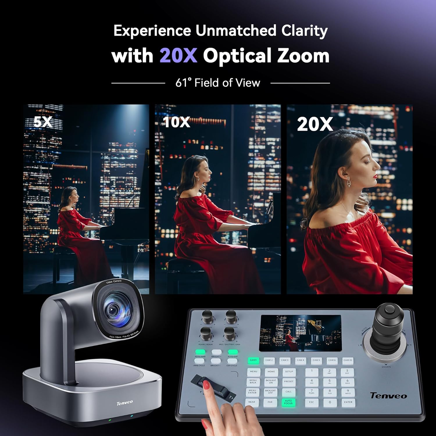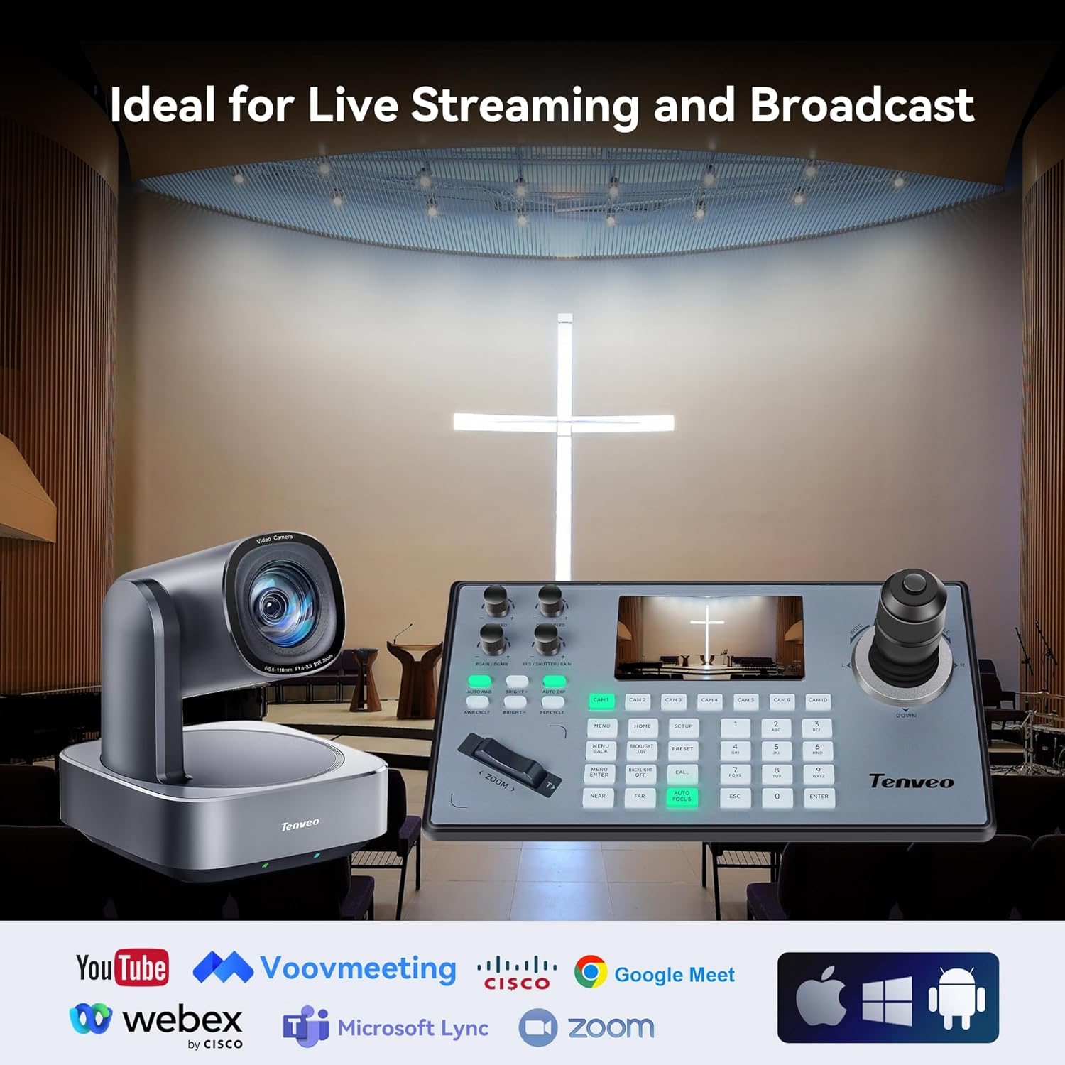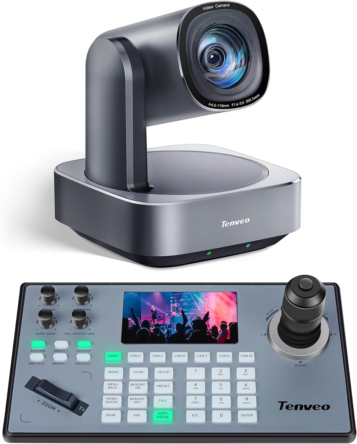 Tenveo PTZ Camera 20X Optical Zoom & 4D Joystick Controller Bundle, 1080P USB3.0/HDMI/IP/PoE VISCA Pelco-D/P RS422/RS485 RS232 Control for Live Streaming of Religious Events